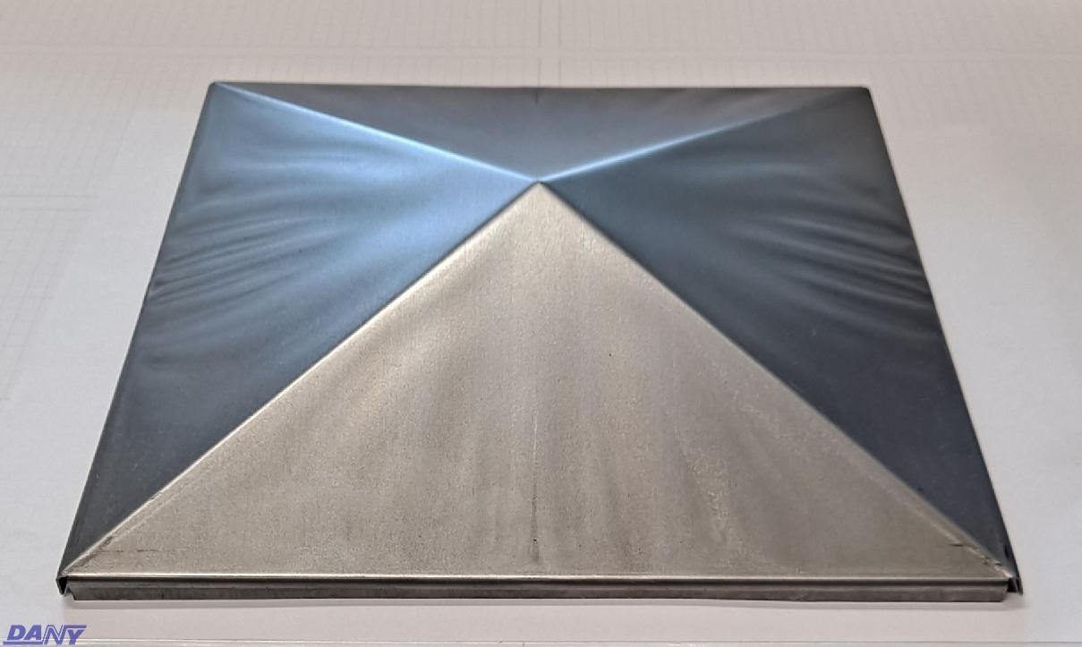 Stalowy daszek kopertowy przeznaczony do nałożenia na słupek o wymiarach 120 x 120 mm.