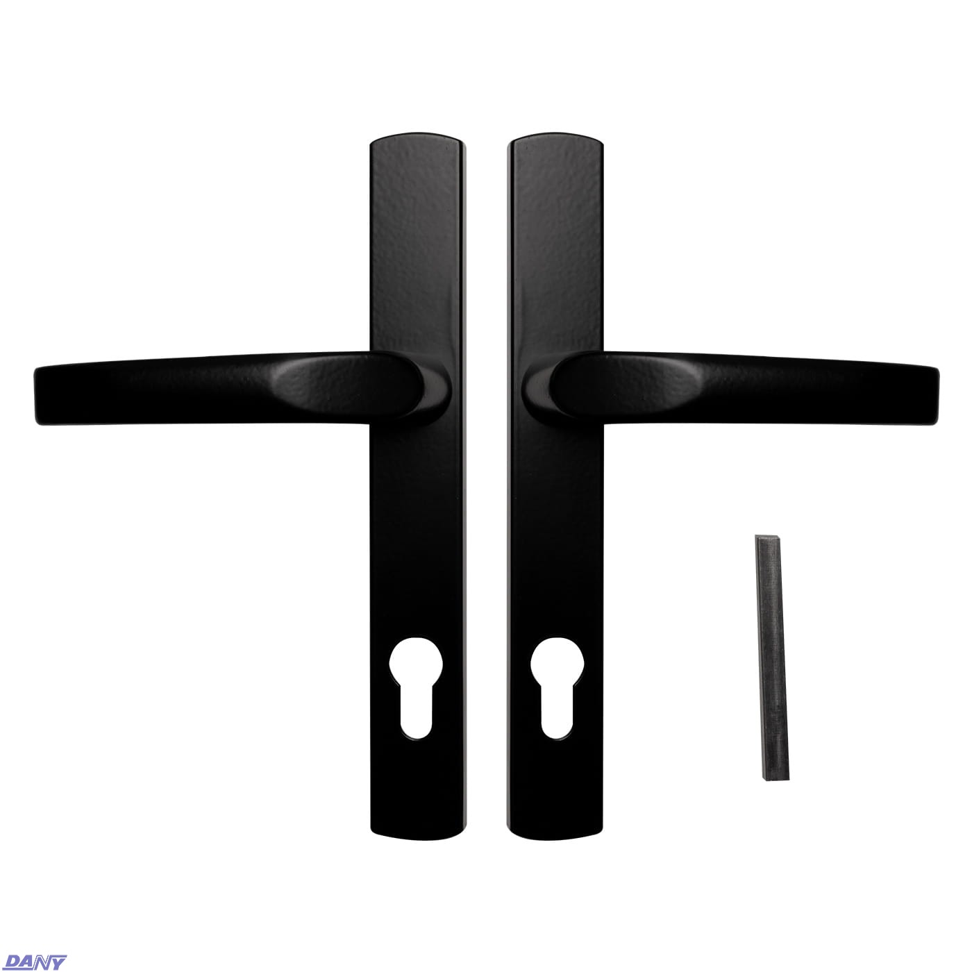 ZAWARTOŚĆ ZESTAWU:klamka z szyldem - 2 szt. trzpień łączący elementy montażowe