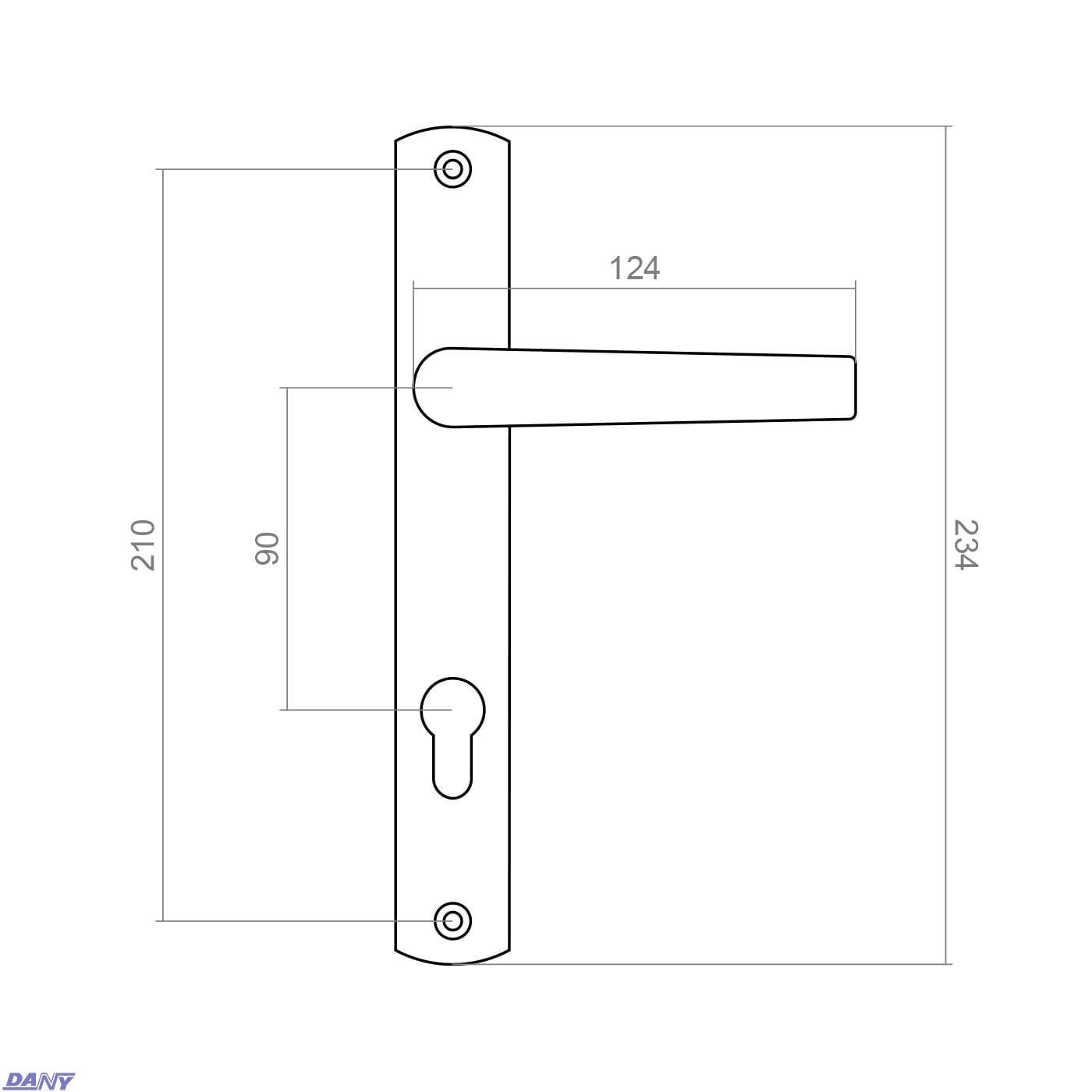 63.180.90.00 / Klamka do drzwi z szyldem 90 H=234 x L=32 mm (40)