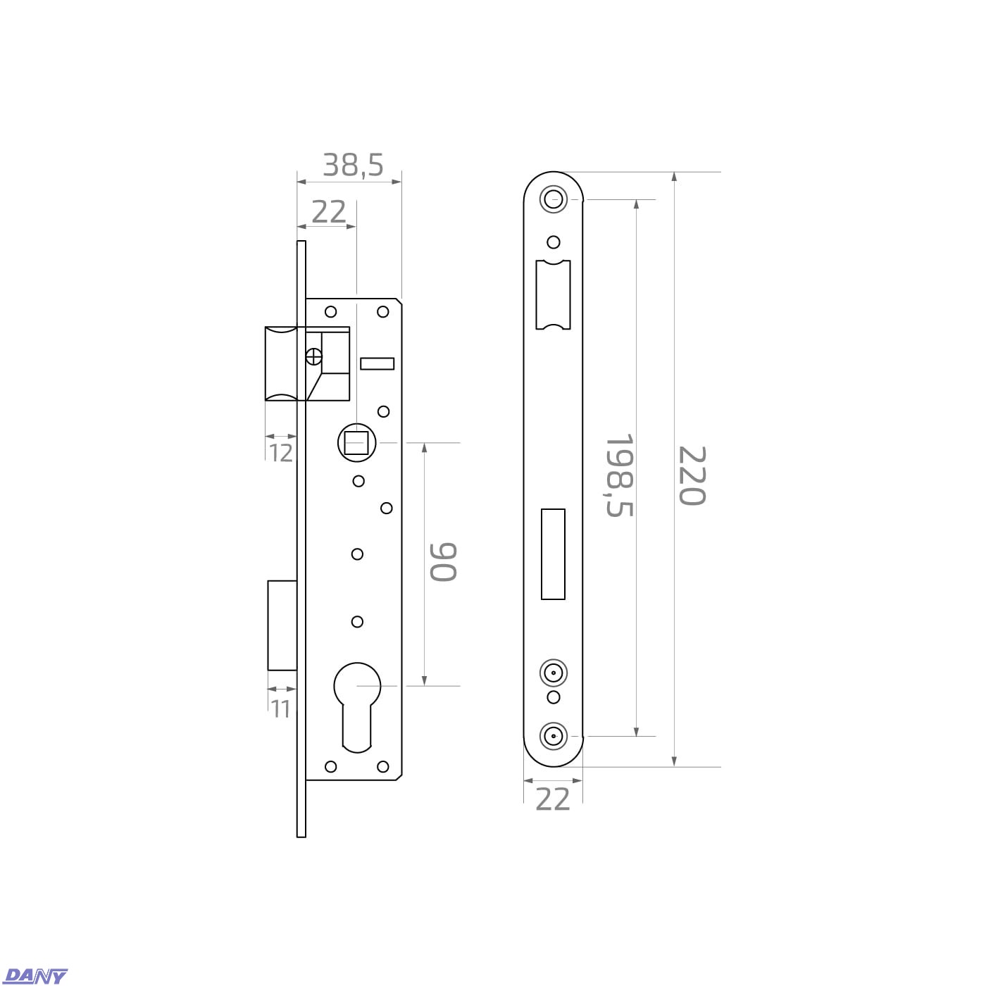 63.210.90M / Zamek wpuszczany zapadkowy 90/22 mm (30)