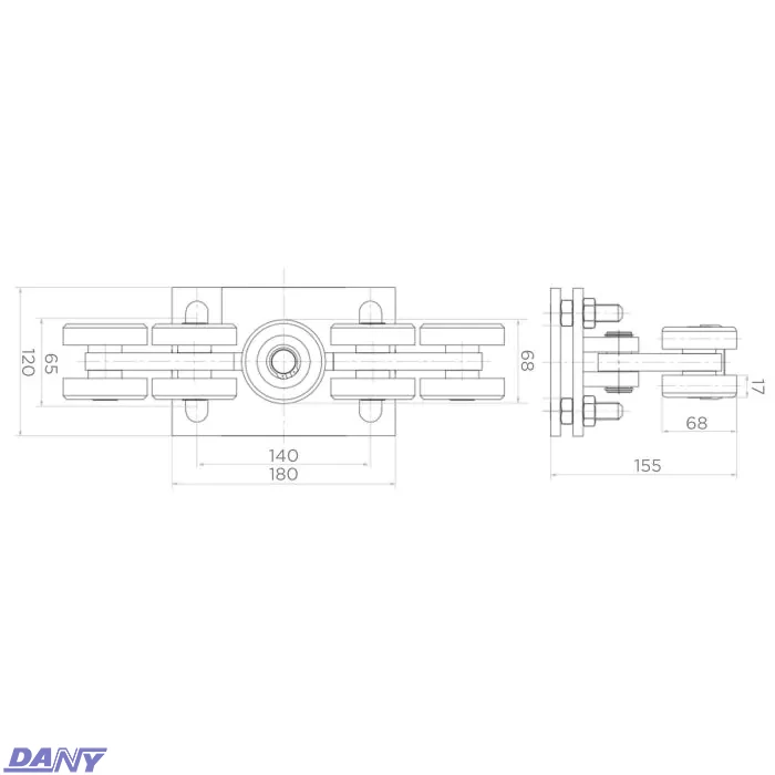 Wózek jezdny 80 do bramy przesuwnej – 9-rolkowy, rolki stalowe