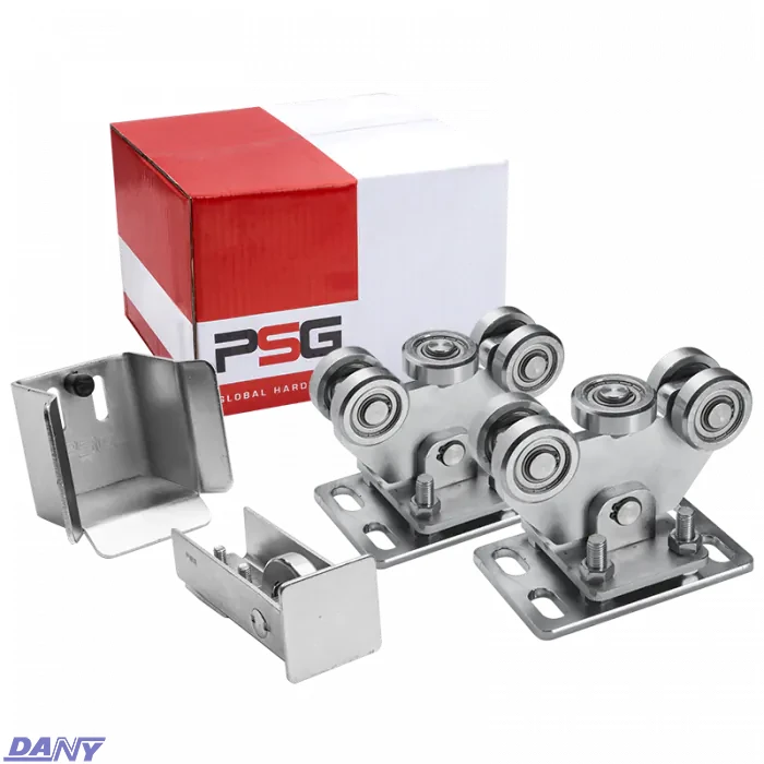 Korzystny cenowo pakiet wózków jezdnych 60.003.70 do bram przesuwnych samonośnych z szyną 70x70x5 mm, wraz z akcesoriami do montażu bramy.Wózek jezdny 60.003.70 (dwie sztuki) z 5 rolkami wykonanymi z metalu (w tym z jedną rolką poziomą). Wózek jest wahliwy i dopasowuje się do bramy przesuwnej (jest połączony z podstawą za pomocą trzpienia). Posiada również regulację wysokości za pomocą śrub. Jest przeznaczony do szyny 70x70x4 mm. Produkt ocynkowany. Rolka najazdowa z zakończeniem 60.011.70 - stalowy element montowany na początku szyny bramy przesuwnej samonośnej. Jej zakończenie stanowi ochronę przed śniegiem i lodem. W komplecie znajdują się śruby montażowe. Rolka pasuje do szyny 70x70x4 mm. Produkt ocynkowany. Stalowy uchwyt najazdu 60.020 dla rolki najazdowej przeznaczony do szyny 80x80x5 mm oraz 70x70x4 mm. Na tylnej ściance znajdują się dwa otwory montażowe oraz gumowy odbój. Produkt ocynkowany. Rolka najazdowa wjeżdza w uchwyt najazdu mocowany do słupka, co rozkłada ciężar bramy na większą ilość elementów oraz stabilizuje ją po zamknięciu. Zastosowanie tych akcesoriów stabilizuje bramę po zamknięciu oraz rozkłada jej ciężar na większą ilość elementów, co znacznie wydłuża czas eksploatacji wózków jezdnych.