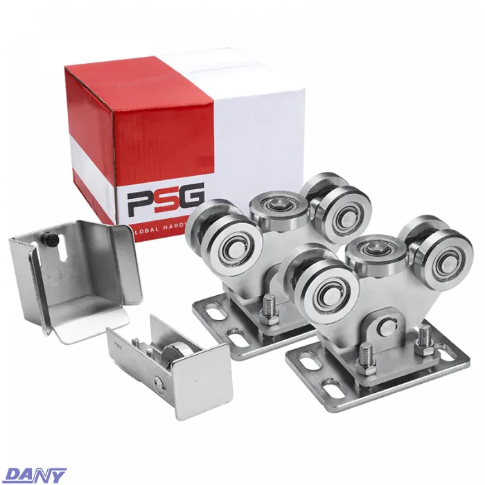 Korzystny cenowo pakiet wózków jezdnych 60.003 do bram przesuwnych samonośnych z szyną 80x80x5 mm, wraz z akcesoriami do montażu bramy. Wózek jezdny 60.003 (dwie sztuki) z 5 rolkami wykonanymi z metalu (w tym z jedną rolką poziomą). Wózek jest wahliwy i dopasowuje się do bramyprzesuwnej (jest połączony z podstawą za pomocą trzpienia). Posiada również regulację wysokości za pomocą śrub. Jest przeznaczony do szyny 80x80x5 mm. Produkt ocynkowany. Rolka najazdowa z zakończeniem 60.011.80 - stalowy element montowany na początku szyny bramy przesuwnej samonośnej. Jej zakończenie stanowi ochronę przed śniegiem i lodem. W komplecie znajdują się śruby montażowe. Rolka pasuje do szyny 80x80x5 mm. Produkt ocynkowany. Stalowy uchwyt najazdu 60.020 dla rolki najazdowej przeznaczony do szyny 80x80x5 mm oraz 70x70x4 mm. Na tylnej ściance znajdują się dwa otwory montażowe oraz gumowy odbój. Produkt ocynkowany. Rolka najazdowa wjeżdza w Uchwyt najazdu mocowany do słupka, co rozkłada ciężar bramy na większą ilość elementów oraz stabilizuje ją po zamknięciu. Zastosowanie tych akcesoriow stabilizuje bramę po zamknięciu oraz rozkłada jej ciężar na większą ilość elementów, co znacznie wydłuża czas eksploatacji wózków jezdnych.