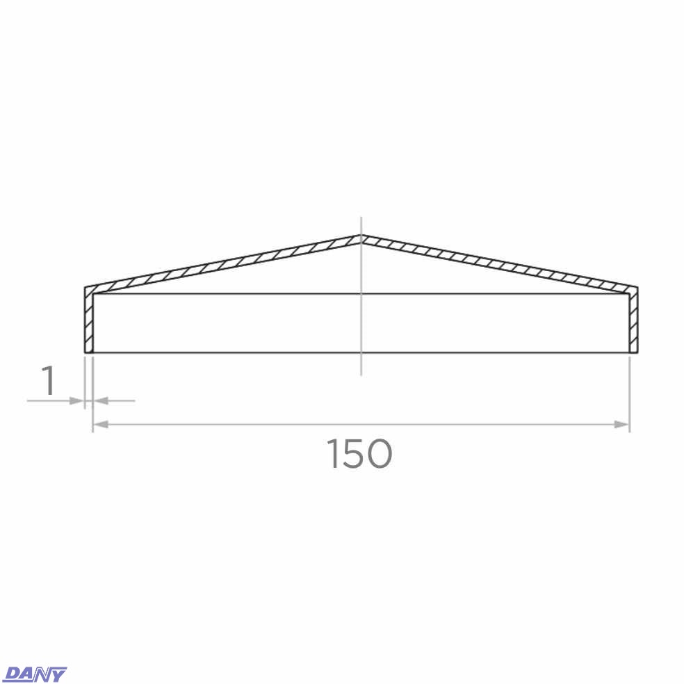 Stalowy daszek kopertowy przeznaczony do nałożenia na słupek o wymiarach 150 x 150 mm.