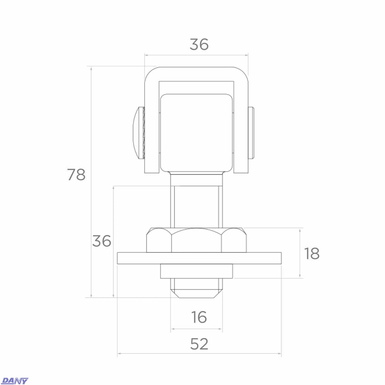 Stalowy zawias regulowany M16 do wspawania, dedykowany do montażu furtek.